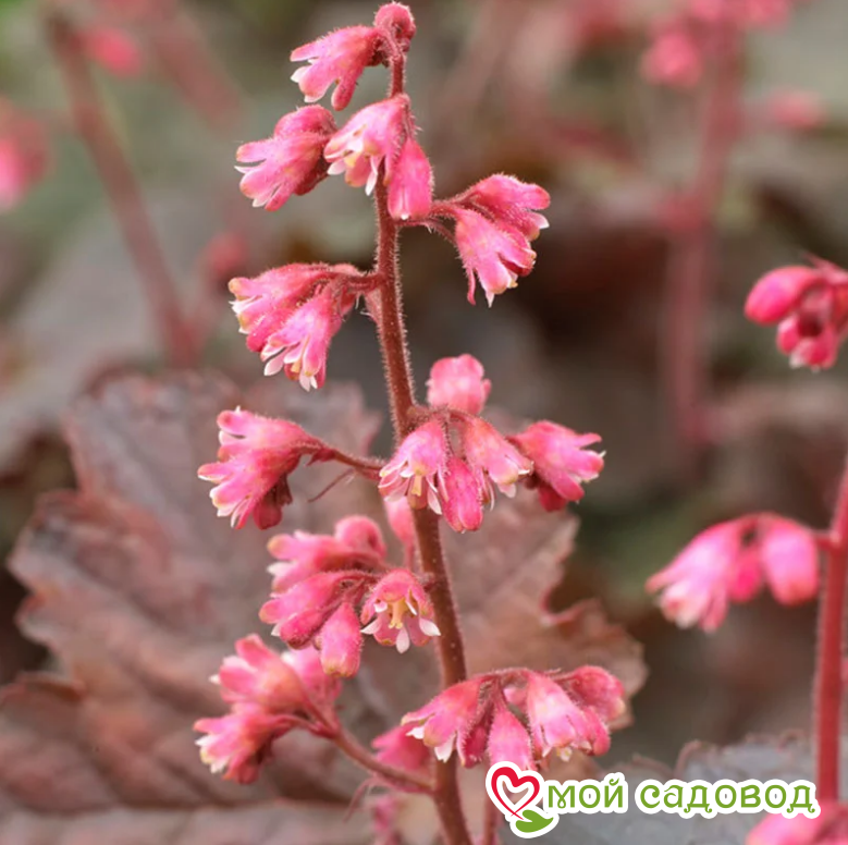 Экзотическая культура родом из Америки. Это невысокие кусты, достигающие 50 см в высоту. Особое внимание привлекают роскошные листья. Они широкие, мясистые, гофрированные, зубчатой формы. В зависимости от сорта окрас может быть желтый, черный, зеленый, янтарный, бордовый и даже серебристый. Цветение гейхеров длится все летние месяцы до начала заморозков. Цветки колокольчатой формы, собранные в кисти. Лепестки окрашены в красный, белоснежный, розовый или бежевый цвет.