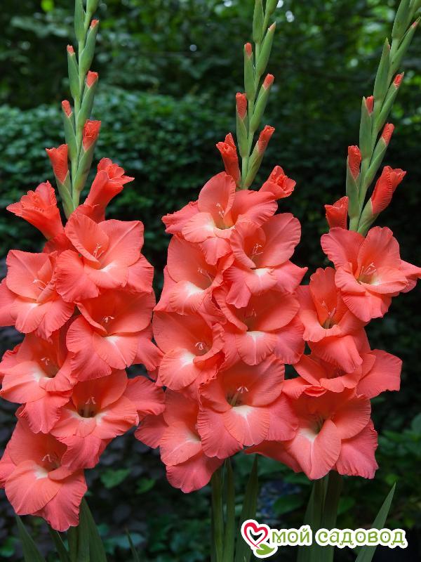 Читать далееЛуковицы гладиолуса гибридного Berlusconi используют для создания ярких цветников, расположенных на хорошо освещенных или частично затененных участках. Место следует выбирать таким образом, чтобы не было сквозняков. К почве культура неприхотлива. Высота стеблей гладиолуса гибридного Berlusconi достигает до 150 см. Большая часть из этой длины – мощные соцветия. Цветы крупные, красивой розово-лососевой окраски с небольшим белым бликом по центру лепестка. Смотрятся такие композиции очень красочно. Цветение продолжается с июля до сентября и сопровождается приятным цветочным ароматом.