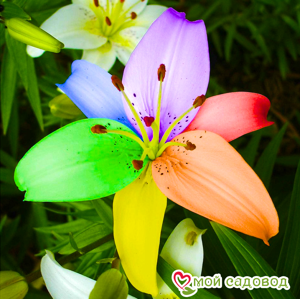 Размер цветка также зависит от сорта. У одних лилий цветки небольшие, изящные, у других – крупные, махровые, с диаметром до 25 см. Окраска цветков поражает своим разнообразием: белые, розовые, желтые, оранжевые, красные, бордовые, фиолетовые, а также двухцветные и многоцветные сорта с крапом, полосками и другими узорами.