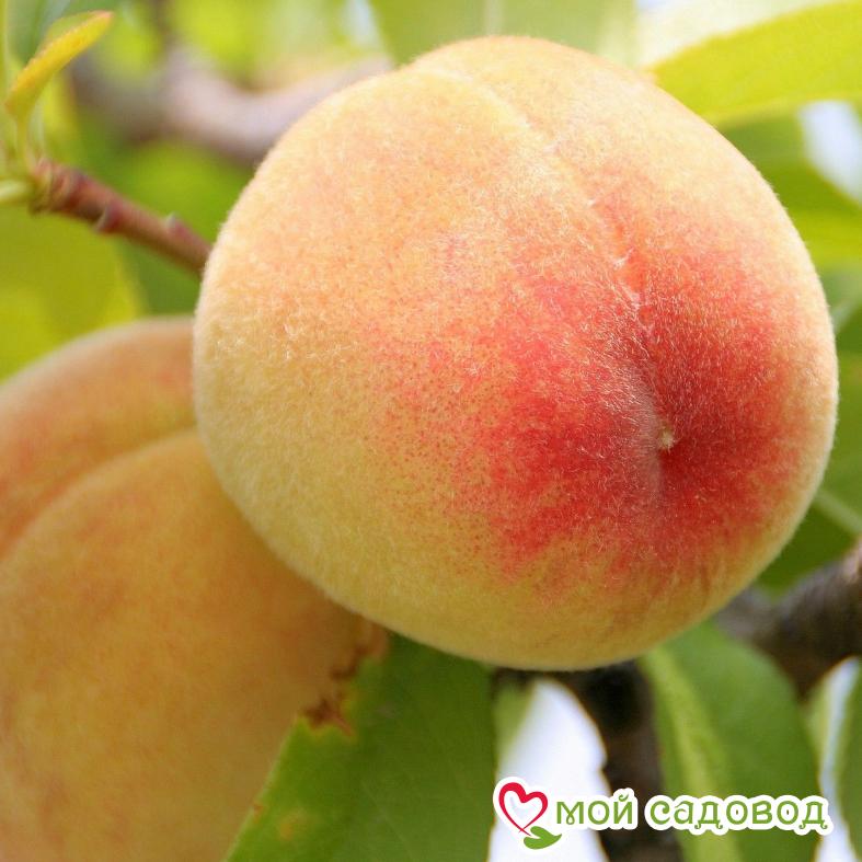 Плоды среднего размера, примерная масса 150-200 граммов. Персики округлые, широкоовальные, со светлой (кремовой) шкуркой, иногда может иметься румянец, но не обязательно, сверху опушены. Мякоть светло-желтая, почти белая, волокнистая. Косточка среднего размера, легко отделяется от мякоти.