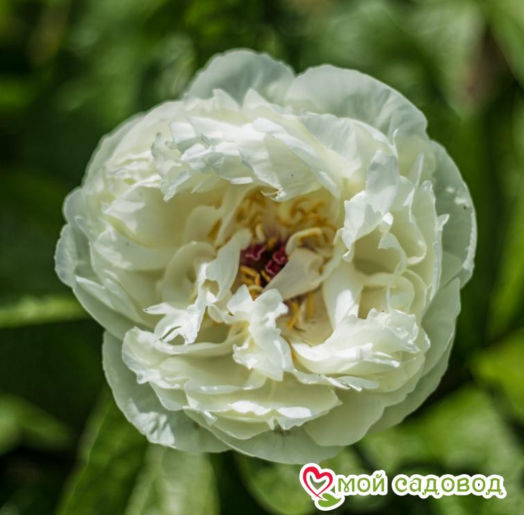 Пион Балерина – цветок нежной красоты, предназначен для создания декоративного аспекта в цветнике. Необычную окраску белому соцветию придает наличие зеленоватых и жёлтых оттенков. Название получил за похожесть на юбку-пачку балерины. В начале цветения образуется плотный бутон, в котором наружные лепестки прикрывают сердцевину. При полном расцвете цветок открывает расположенные в центре тычинки. Листья крупные, слегка опушеные, имеют светло-зеленый окрас. Куст образуют крепкие и толстые стебли. Боковых бутонов не дает. Зацветает в середине мая, цветение длится 2-3 недели.