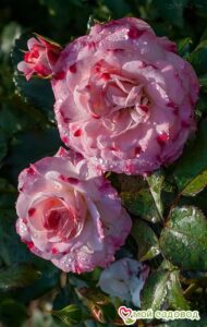 Куст компактный и густой, достигающий в высоту 40-60 см и в ширину 50 см. На крепких побегах формируются среднего размера, насыщенного зеленого цвета листики с глянцевой поверхностью. Облиственность у растения довольно сильная. Однако несмотря на это, в период активного цветения кусты почти полностью покрыты соцветиями, за счет чего практически не видно листву. Желто-оранжевые с малиновыми полосами бутоны имеют овальную, заостренную форму. По мере распускания цветка окрас лепестков становится более желтым с красно-оранжевыми краями. Форма цветка – от чашевидной до розетковидной. Оттенки плавно переходят один в другой. Цветки махровые, диаметром 4-6 см, в каждом от 25 до 45 лепестков. На одном стебле образуется 5-10 цветков, собранных в соцветия, покрывающие весь куст. Сорт обладает слабым ароматом, но очень приятным, с легкими пряными нотками чайного дерева и масла иланг-иланга. Хранение до посадки Как хранить растения, если вы получили посылку раньше начала посадочного сезона? Для хранения саженцев роз есть несколько простых правил: Если роза спит — храним в холодильнике или подвале при температуре от 0 до +4 °С, или на улице в коробке под толстым слоем снега. Если роза проснулась — прикопать в теплице или высадить в сад, обеспечив укрытие. Можно посадить розу в горшок и хранить в прохладном подвале или на балконе/лоджии, притеняя от прямых солнечных лучей. Во время хранения периодически проверяйте состояние посадочного материала. Поврежденные, загнившие части корней удалите и обработайте фунгицидом (Топаз, Фитоспорин).